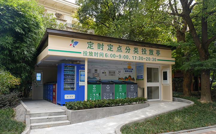 可移動式鋼結構垃圾分類房,造型可根據現場環境設計,材料均為防水、阻燃、環保材料;內可配備空調、滅蚊燈、換氣扇、臭氧機、洗手池、清潔區設有拖把池,方便工作人員使用;